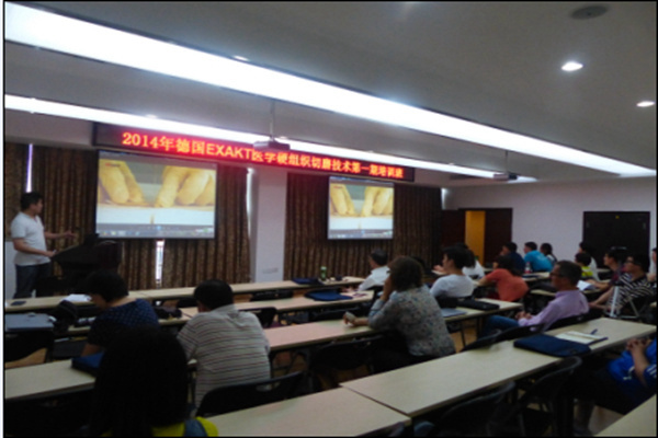 ? ? ? ?為了讓用戶更好地掌握好這套設備的技術應用,相互交流和學習硬組織切磨片的制備方法及經(jīng)驗,德國EXAKT公司北京代表處暨北京共贏聯(lián)盟國際科技有限公司于2014年5月18-20日在重慶醫(yī)科大學口腔醫(yī)學院舉辦了為期3天的第一期“德國EXAKT醫(yī)學硬組織切磨技術培訓班”,特別聘請德國EXAKT公司的技術專家和北京301醫(yī)院口腔研究所、北京大學口腔醫(yī)院中心實驗室、上海瑞金醫(yī)院傷骨科研究所、中科院古脊椎與古人類研究所等國內(nèi)專家為用戶學員們培訓和交流。