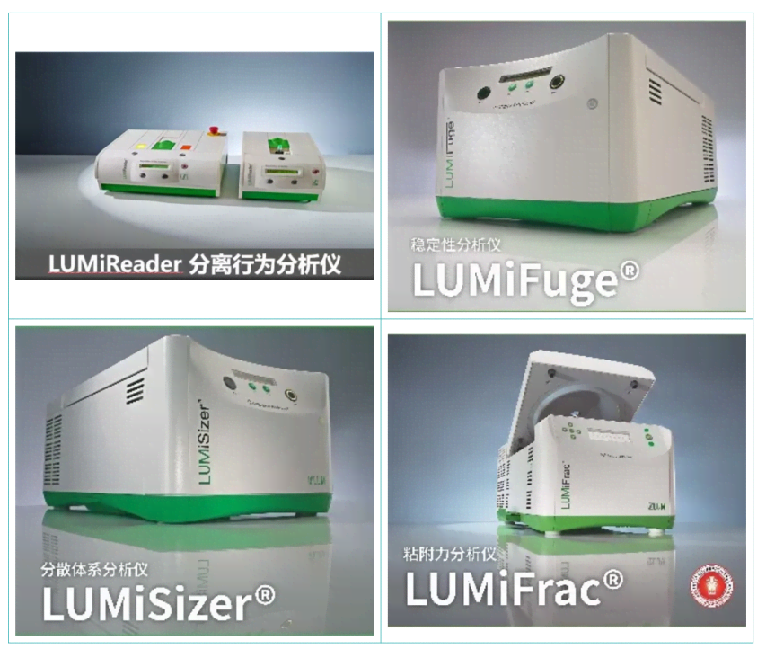 德國(guó)LUM系列材料性能分析儀器主要包括穩(wěn)定性分析儀、分散體系分析儀、分離行為分析儀、以及粘結(jié)力/附著力/粘結(jié)強(qiáng)度分析儀四大種類(lèi)。
