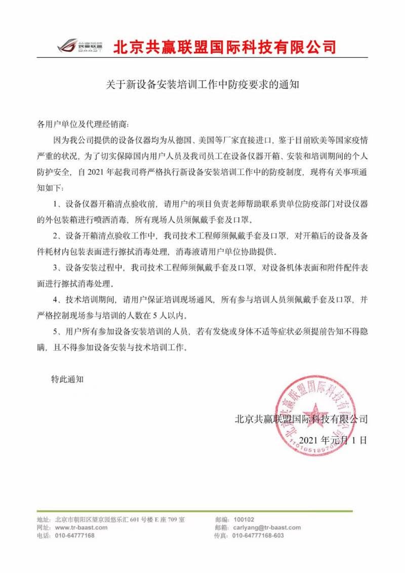 關(guān)于新設(shè)備安裝培訓(xùn)工作中防疫要求的通知