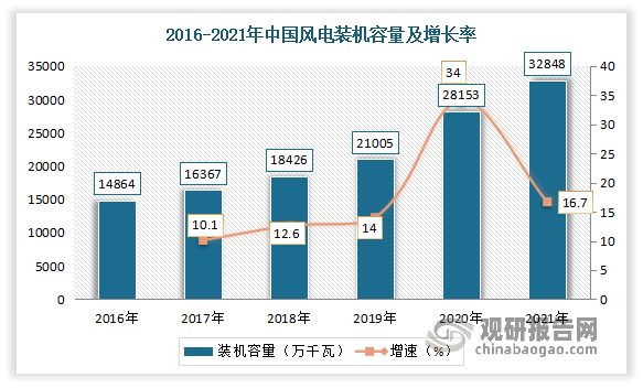 風(fēng)電葉片是風(fēng)電機(jī)組的重要組成部分,約占風(fēng)電總成本的24%左右,是最關(guān)鍵的零部件組成。根據(jù)數(shù)據(jù),在風(fēng)電裝機(jī)容量方面,截至2021年我國(guó)風(fēng)電裝機(jī)容量為32848萬(wàn)千瓦,同比2020年增長(zhǎng)16.68%。預(yù)計(jì)隨著終端電力需求持續(xù)增長(zhǎng),能源需求仍是未來(lái)關(guān)鍵,將帶動(dòng)風(fēng)電葉片產(chǎn)業(yè)整體需求持續(xù)上升,從而也將帶動(dòng)碳纖維需求的上升。
