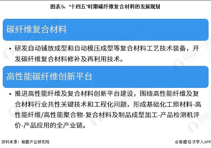 “十二五”規(guī)劃提出重點(diǎn)圍繞聚丙烯氰基碳纖維技術(shù)開(kāi)展技術(shù)提升;“十三五”規(guī)劃時(shí)期將高性能碳纖維列入高端材料;“十四五”規(guī)劃提出要加強(qiáng)碳纖維等高性能纖維及其復(fù)合材料的研發(fā)應(yīng)用,為未來(lái)碳纖維行業(yè)的技術(shù)進(jìn)步提供了良好的政策環(huán)境。