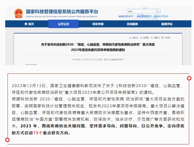1.科技創(chuàng)新2030-“癌癥、心腦血管、呼吸和代謝性疾病防治研究”重大項(xiàng)目2023年度定向委托項(xiàng)目申報指南