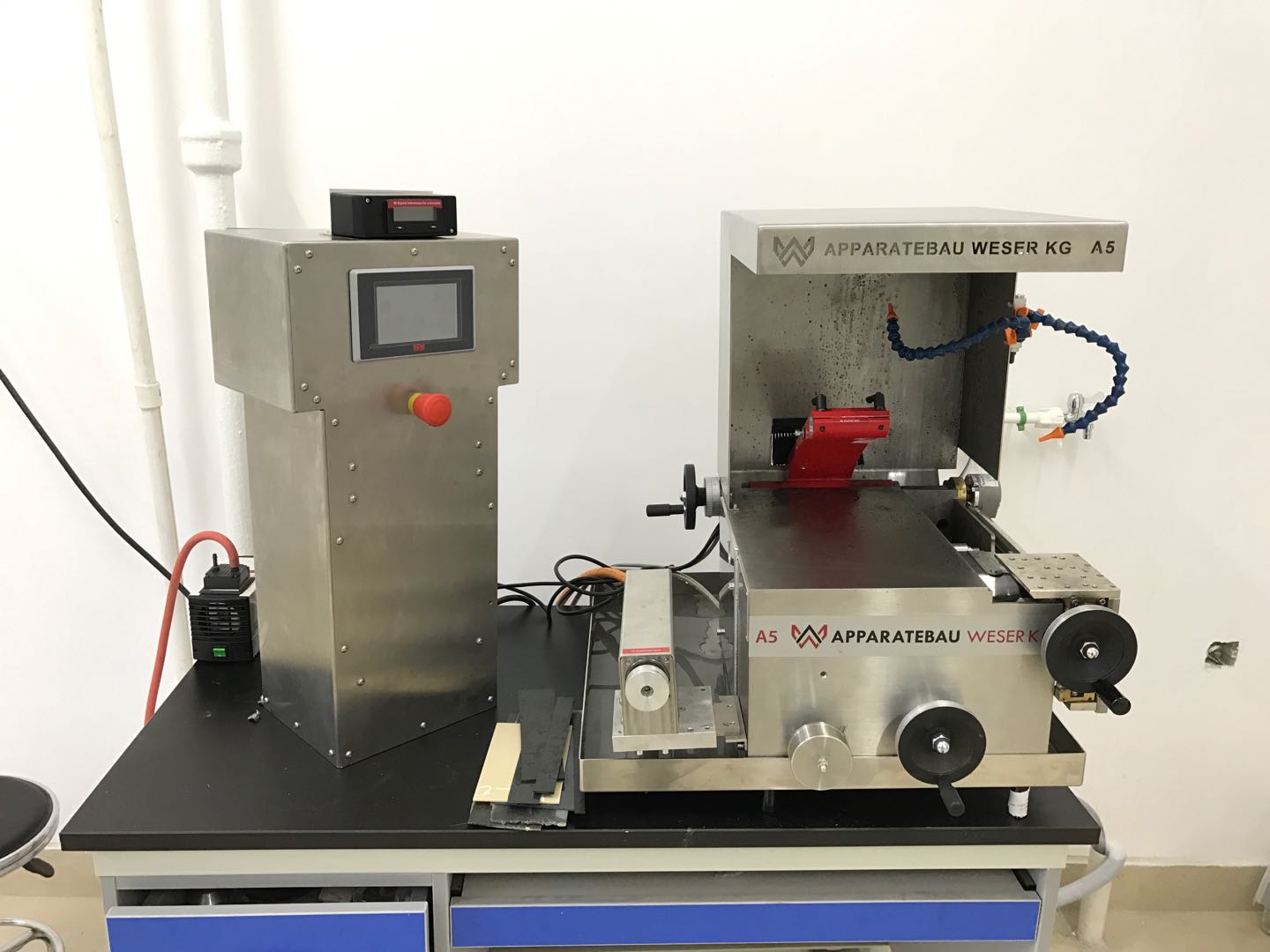 ? ? ? 2018年1月23日,我公司在黑龍江石化院完成國內首臺AW-5多功能復合材料切割機的安裝和培訓,并且通過使用方的驗收。該型號切割機是整機德國進口,擁有德國制造一貫的優(yōu)秀品質,同時又針對復合材料研發(fā)行業(yè)的實際需要,按照中國使用者的使用習慣設計,經過黑龍江石化院的匡弘老師和設備科的胡永玲老師,從本單位的實際情況為出發(fā)點,經過多次、長時間的市場調研和技術論證,一致認為AW-5多功能復材材料切割機,可以滿足本單位碳纖維、芳綸等材料的V型口、凹型槽及矩形樣條的切割,并且具備很高的切割精度,為單位的復材加工測試工作提高了效率,節(jié)約了時間,直接提升了本單位的科研水平。