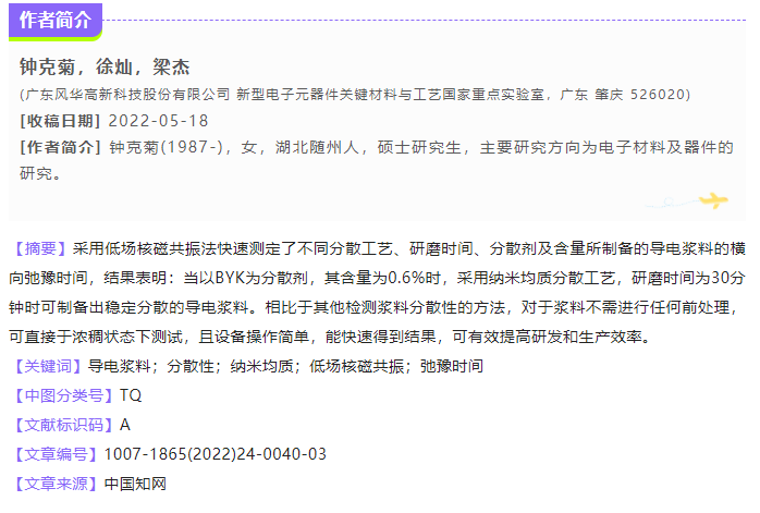 低場核磁共振法測定電子漿料的分散性