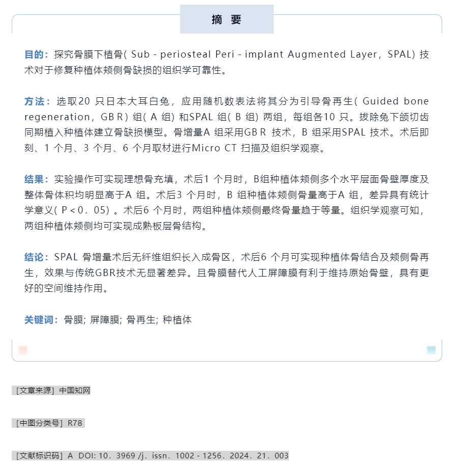 骨膜下植骨技術(shù)修復(fù)兔口腔種植體頰側(cè)骨缺損的實(shí)驗(yàn)研究 來(lái)源:本站 時(shí)間:2025-08-22 00:00:00